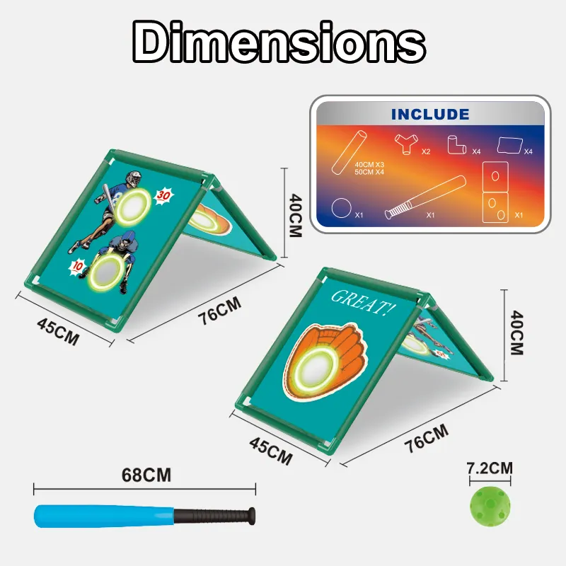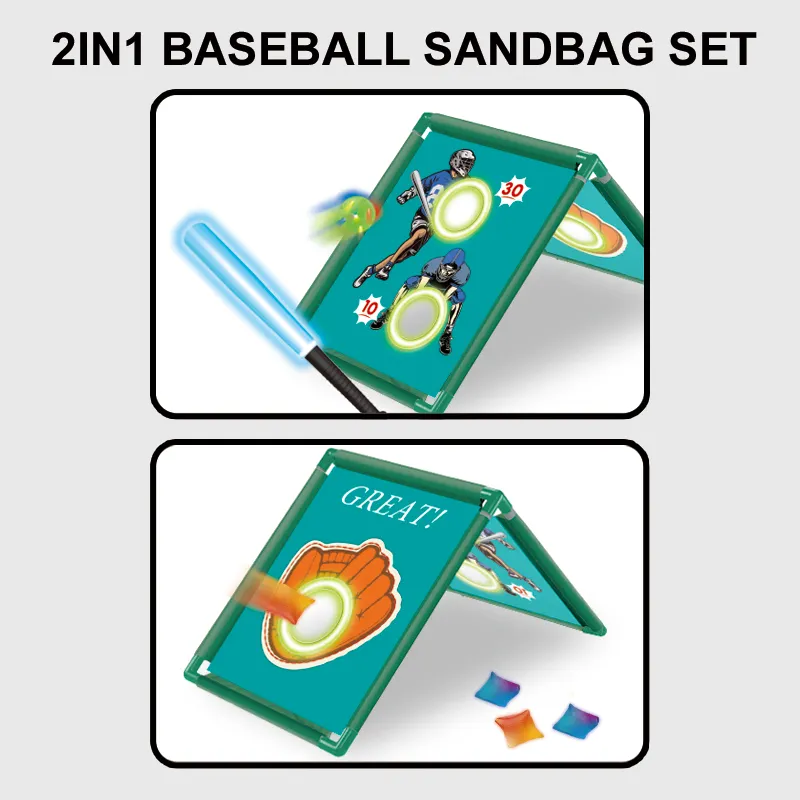 2-In-1 Sport Sets Light up Baseball Bat Throwing Target Toys Outdoor Toys Bean Bag Toss Game for Kids