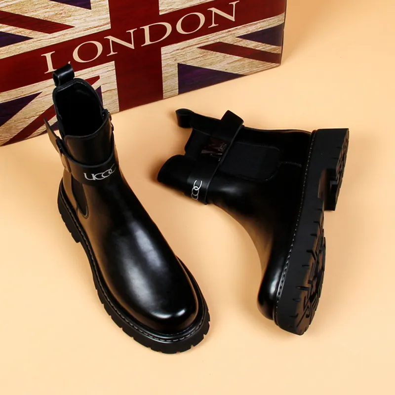 2025 New Chelsea Motorcycle Men's Boots Fashion and Casual Interior Height Increasing Youth Short Boots British Men's Boots