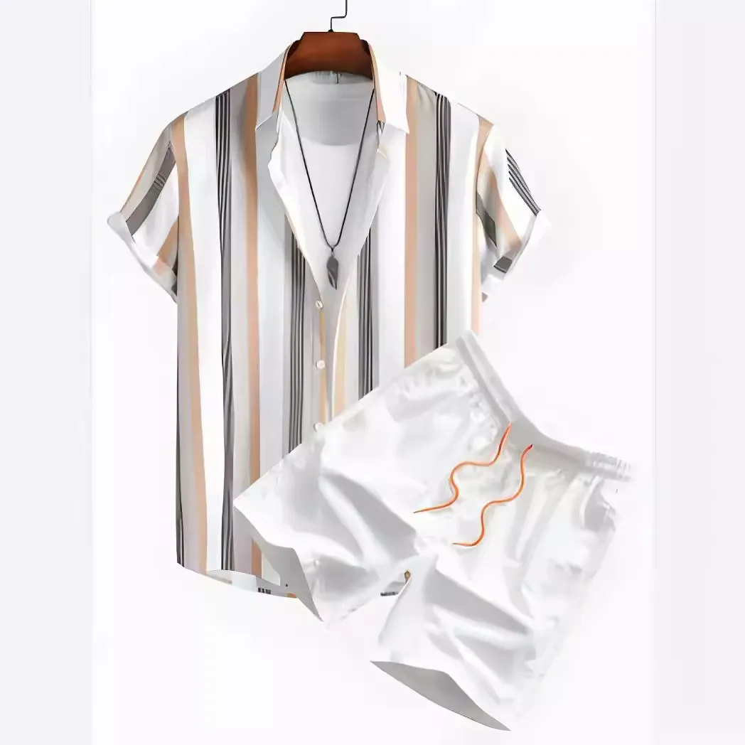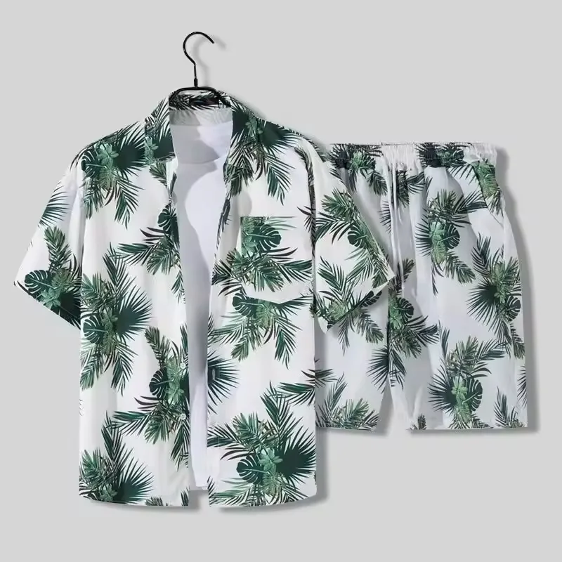 2025 New Male Collar Short Sleeve Print Shirt and Shorts Sets Custom Plus Size S- 4XL Beach Shirts OEM Men's Shirts Set for Men