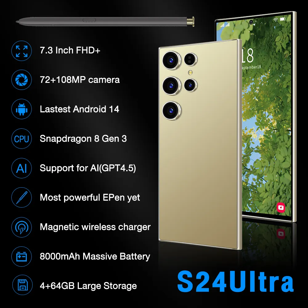 2025 S24 ULTRA Original 7.3" 16GB+1TB 48MP+108MP 4K LED Display Smartphone 5G Mobile Cell Phone English French Operating