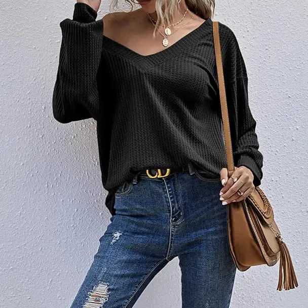 2026 Women's Clothing New Autumn Winter Solid Color V-neck Casual Slim Fit Long Sleeve Knitted Simple Style