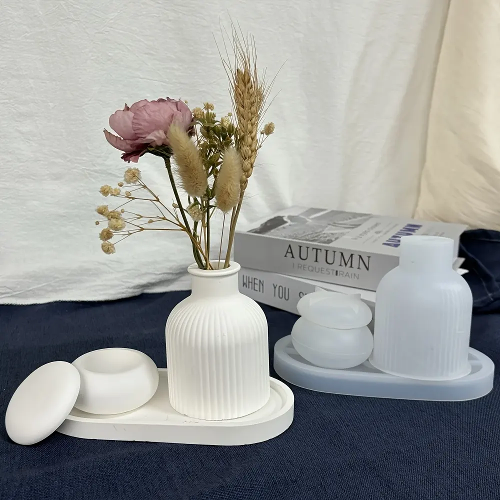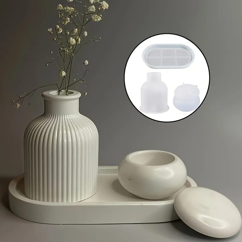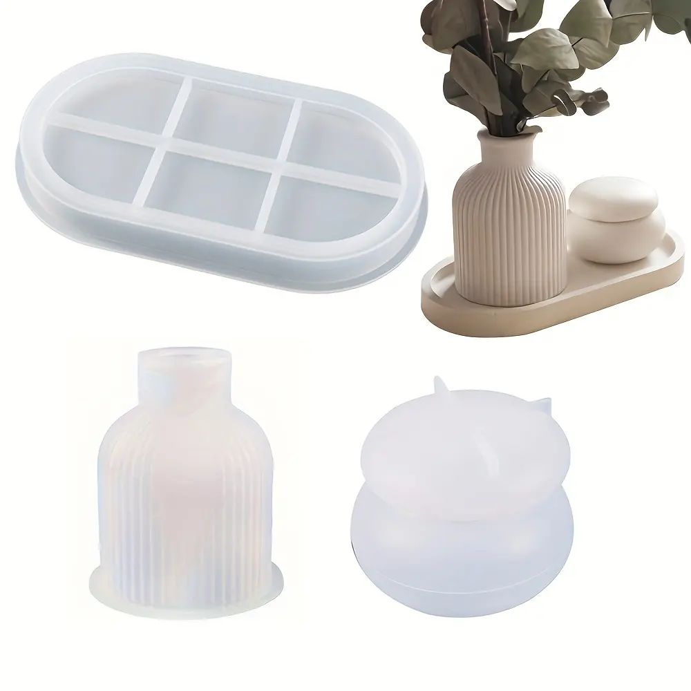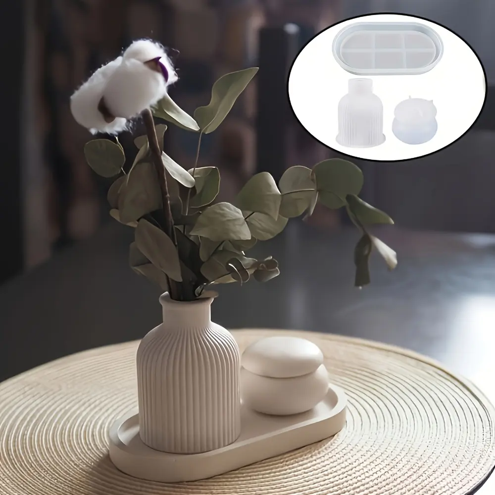 4 ชิ้นง่าย DIY ชุดแม่พิมพ์ซิลิโคนสำหรับตกแต่งบ้านสไตล์หัตถกรรมถาดรูปไข่แม่พิมพ์เรซินยิปซั่มซีเมนต์แจกันเครื่องประดับเค้กเครื่องมือ