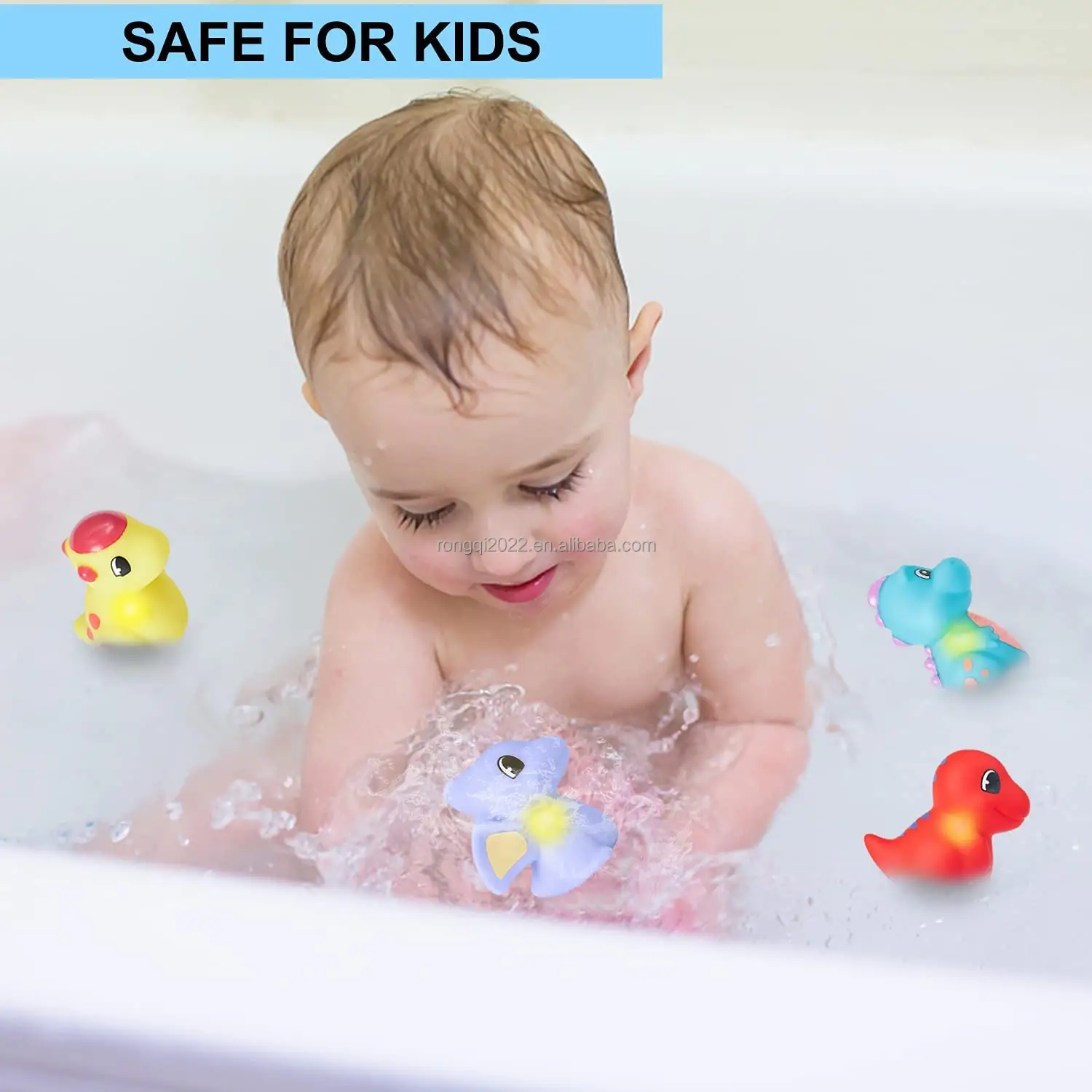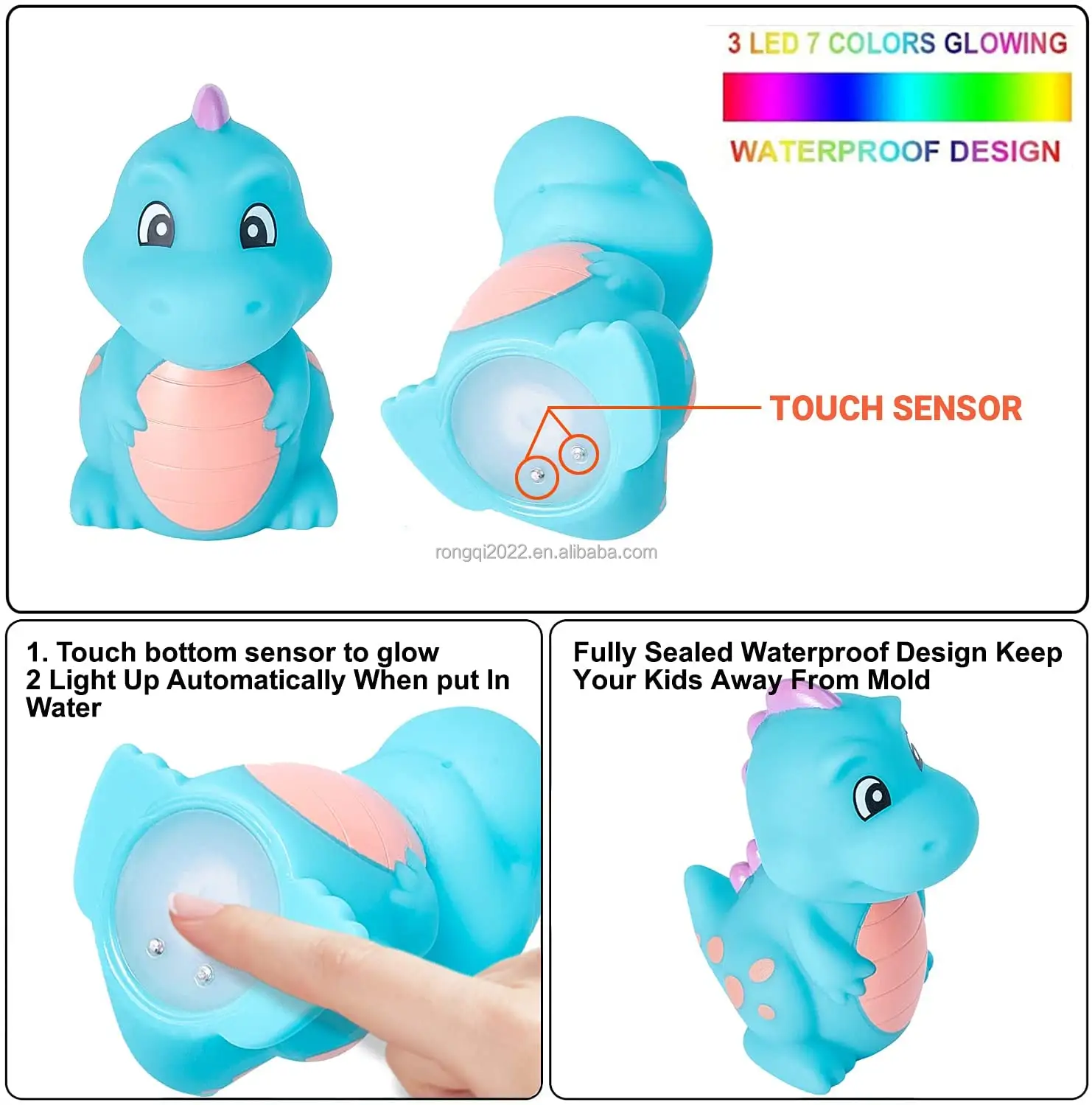 8ชิ้นLight upลอยของเล่นอาบน้ำไดโนเสาร์ชุดไม่มีรูไม่มีแม่พิมพ์กระพริบยางมังกรของเล่นสำหรับเด็กทารกห้องน้ำ