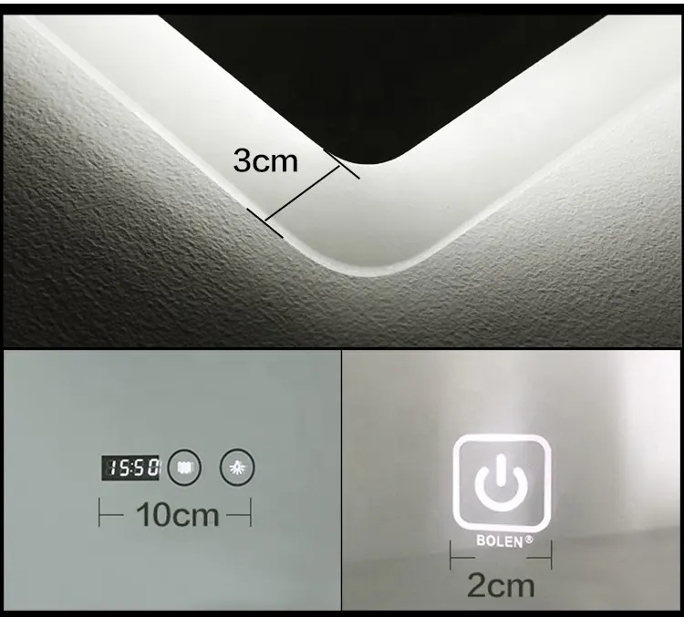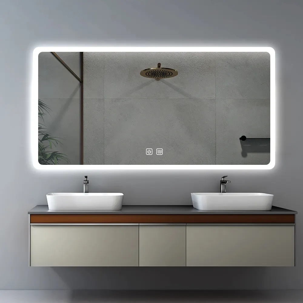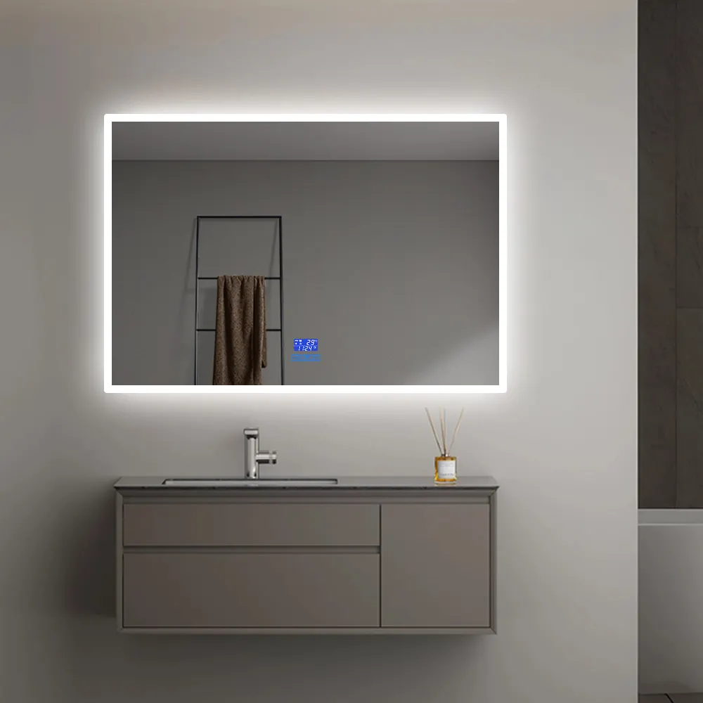 Backlit Smart Sensor Touch กระจกตกแต่งติดผนังกระจกห้องน้ำ LED Light Bath กระจกอุ่น Antifog