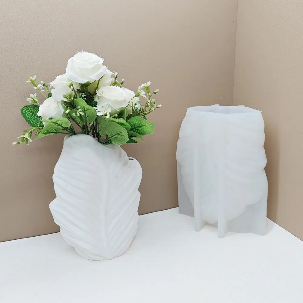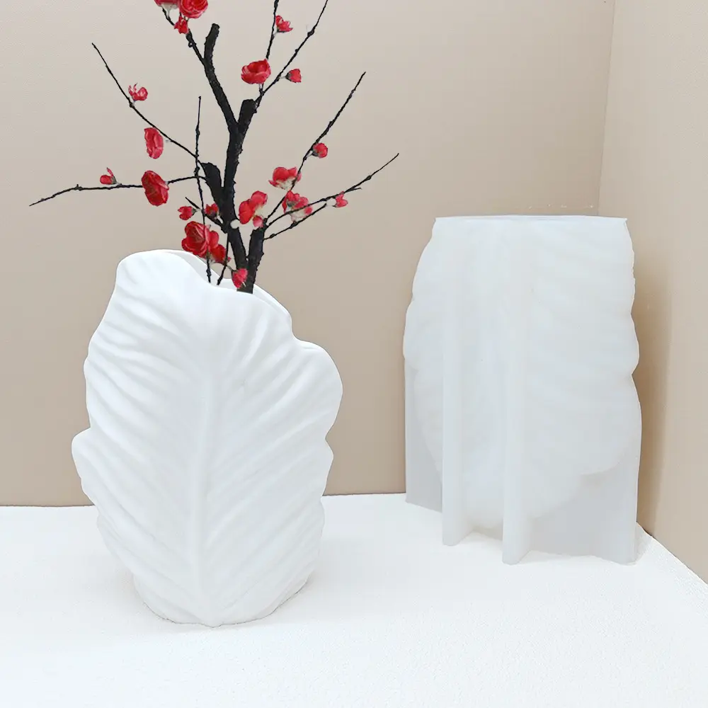 BS050 DIY หน้าแรกศิลปะตกแต่ง Porch เครื่องประดับคอนกรีตเซรามิค Leaf แจกันซิลิโคนแม่พิมพ์สำหรับแจกันดอกไม้ทำเครื่องมือ