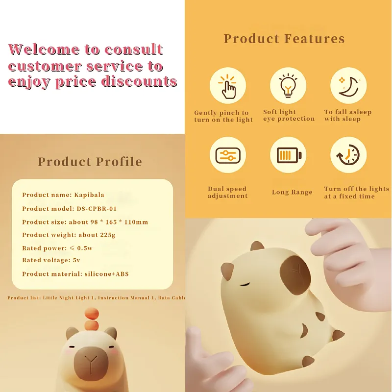 คลาสสิกสีกากี Dolphin Night Light โมเดิร์น LED ชาร์จ USB สำหรับตกแต่งห้องนอนแบบพกพา Capybara Night โคมไฟเทศกาลของขวัญ