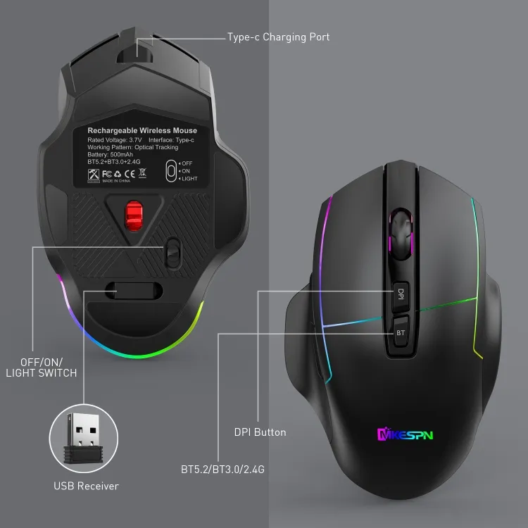 Computer Accessories MKESPN X11 Three-modes Charging Wireless RGB Gaming Mouse With USB Charging Cable