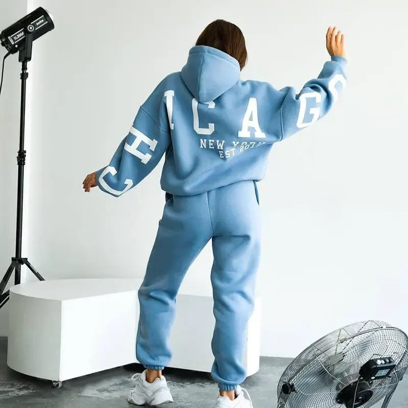 Custom Logo Hoodies and Sweat Pants Jogger Set 2 Two Piece Set Sweatpants and Puff Printing Hoodie Set Embroidery Hoodie