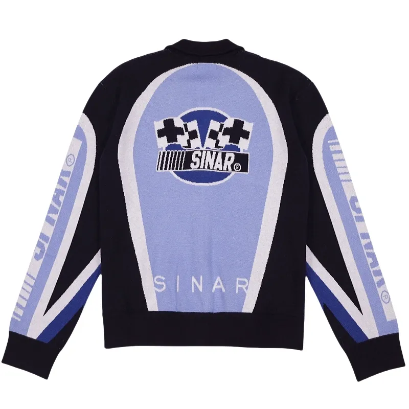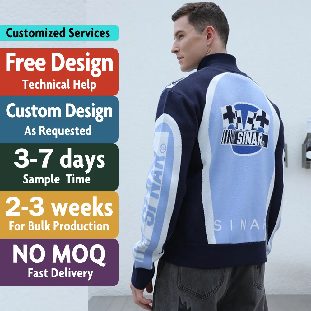 Custom LOGO Sweater Winter Men Casual Knitwear Fashion Zipper Jumper Graphic Track Coat Knitted Sweater Vintage Racing Jacket