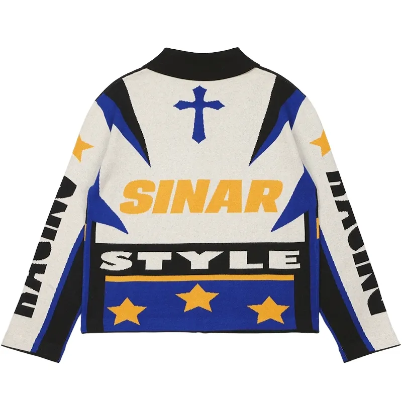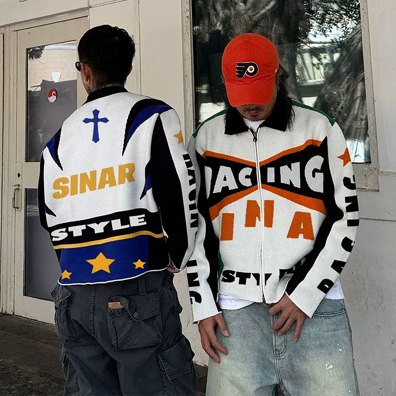Custom LOGO Winter Men Sweater Casual Knitwear Zipper Jacquard Jumper Graphic Track Coat Design Racing Jacket Knitted Sweater