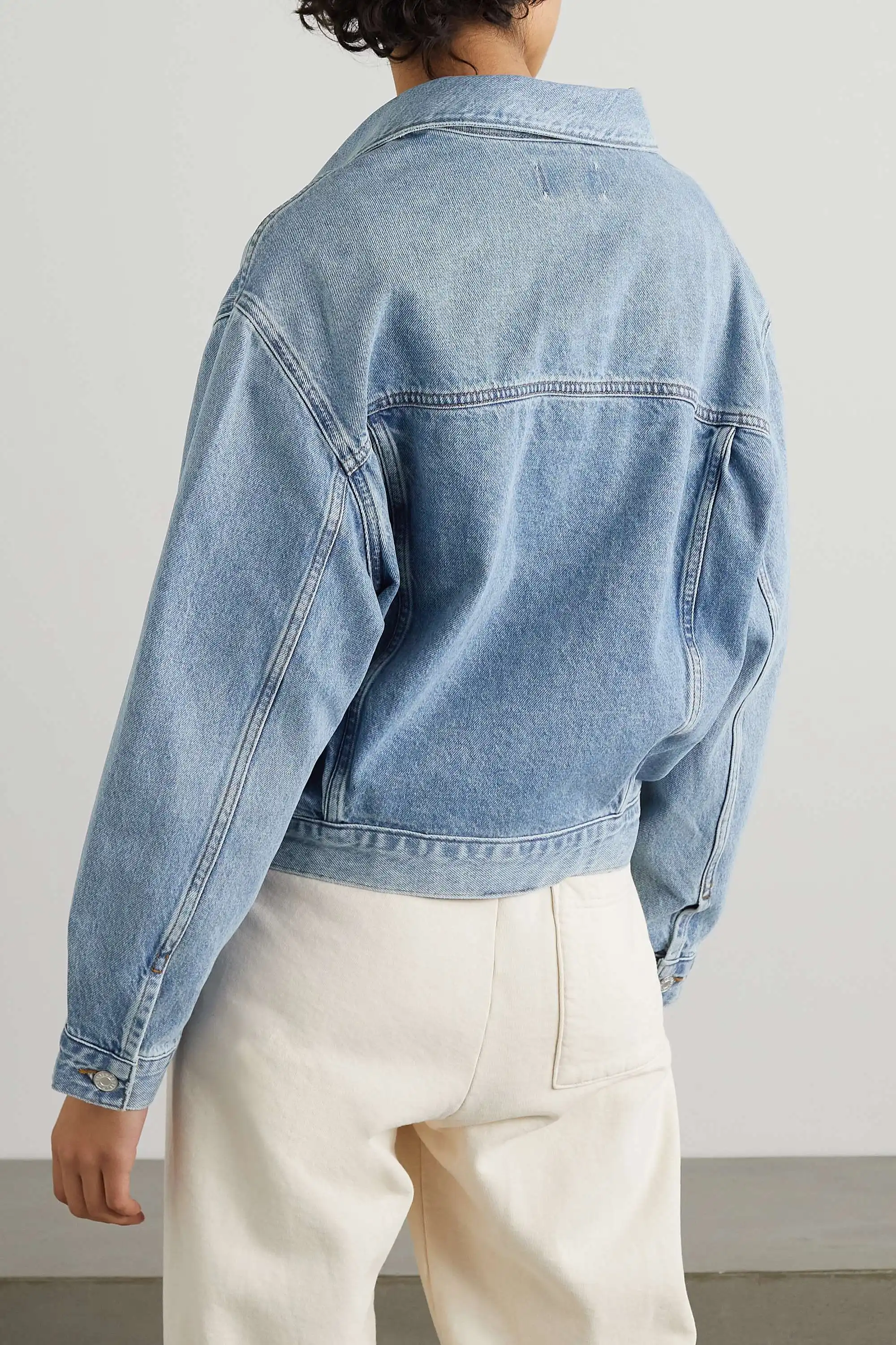 Custom Low MOQ Medium Wash Blue Organic Denim Jacket for Women