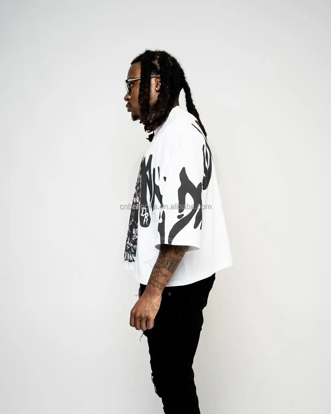 Custom Men's BOXY Fit 100% Cottonเสื้อยืดลำลองแขนสั้นพิมพ์หน้าจอHip Hop Streetwearสไตล์OEMโลโก้