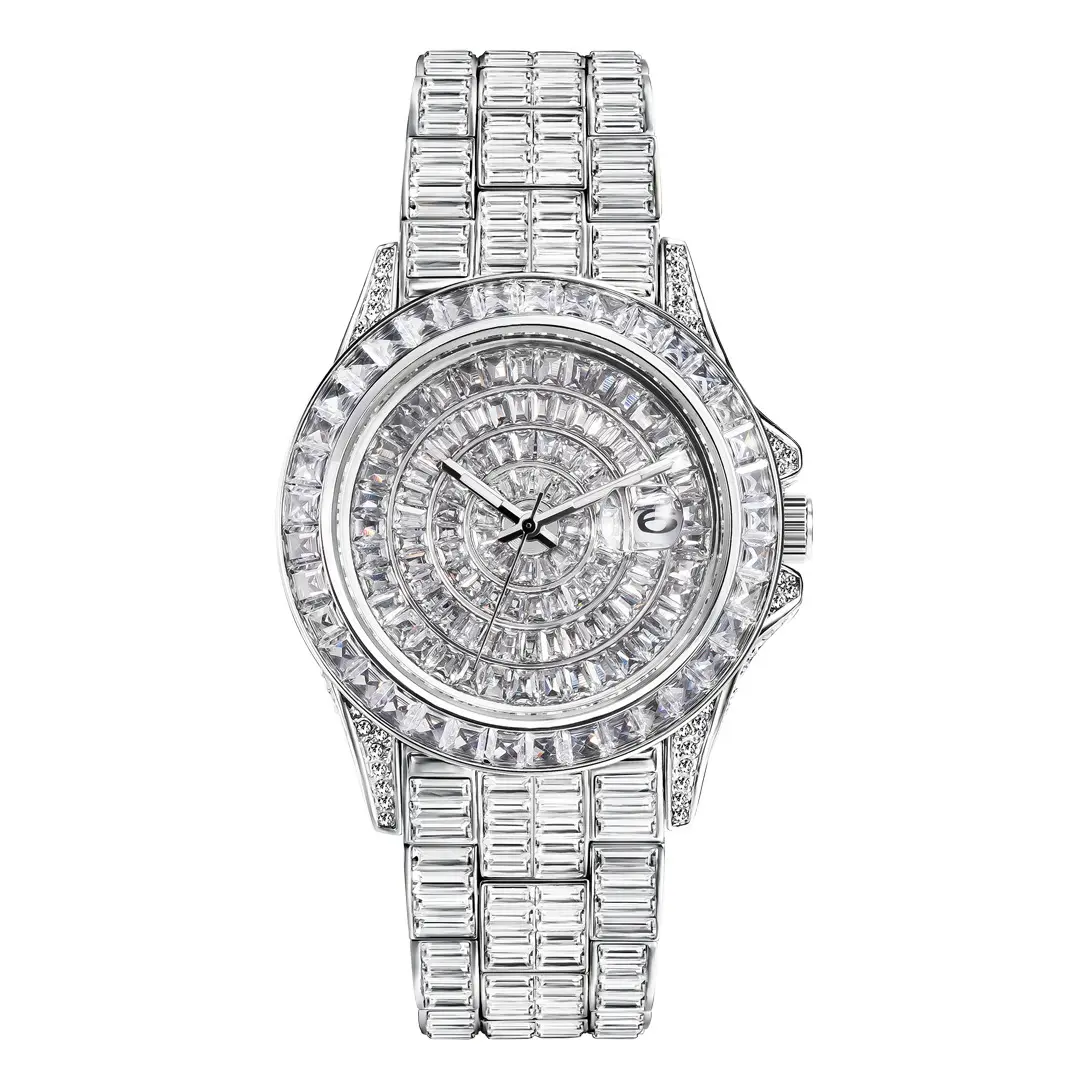 Custom Top Brand Fully Baguette Quartz Luxury Women Fashion Hot Jewelry Hip Hop for Filled Stainless Steel Rapper Watches