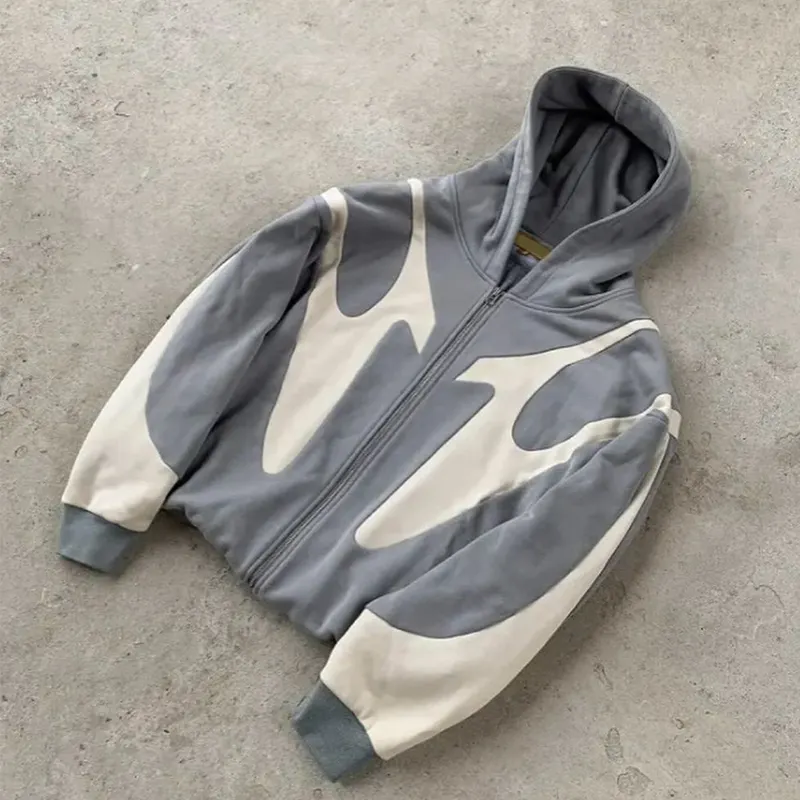 Customized Y2K Casual Pullover Hoodie Heavyweight Oversized Distressed Sun Faded Embroidered Patch Zip 100% Cotton for Men Women