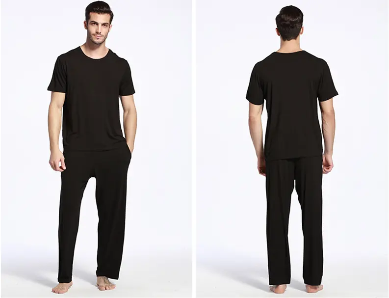 Designer Men Round Neck Pajamas t Shirt and Pants 2 Pieces Men Soft Bamboo Pajama Sets Loungewear Suit Knitted Sleepwear