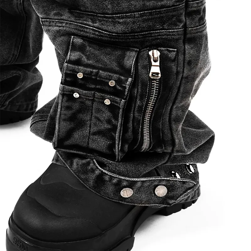 DiZNEW Wholesale Men Custom Logo Jeans Plus Size Top Quality Multi Pocket Baggy Men's Jeans