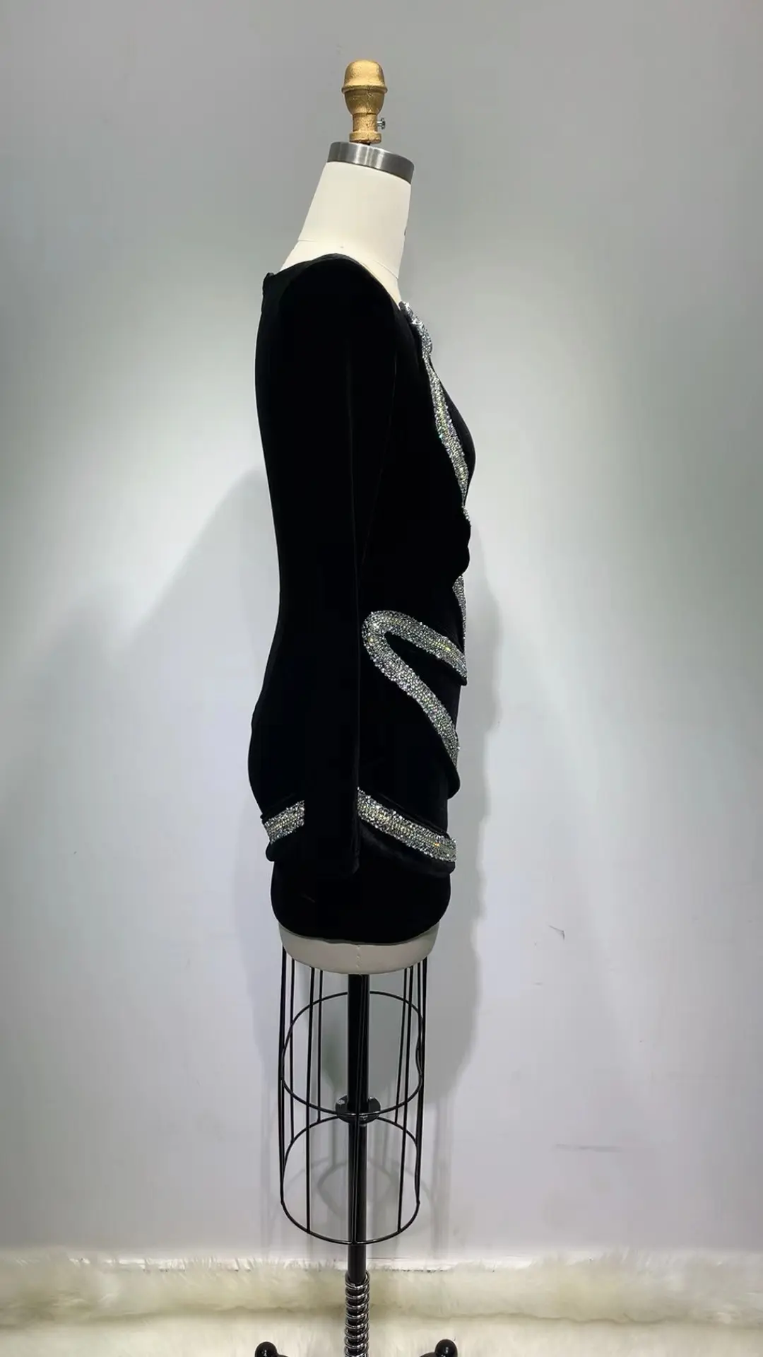 ED2292 Kimshein Black Girl Luxury Dresses Long Sleeve Mesh V Neck Velvet Snake With Crystal Vestidos Party Evening