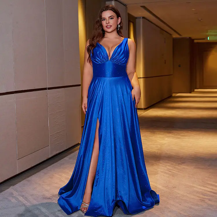 Elegant Plus Size Women's Summer Evening Dress Manufacturers' New Sexy Suspenders V-Neck Design Slim Pleated Clothing for