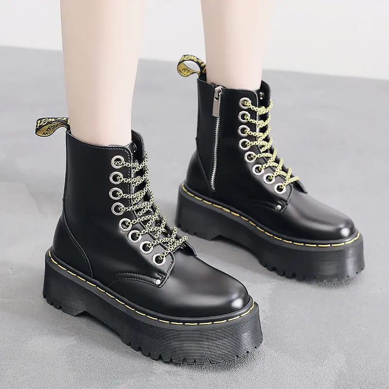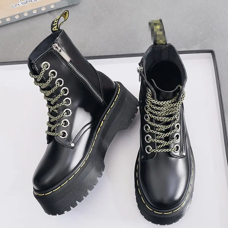ยุโรปอเมริกันผู้หญิงหนา 8 หลุม Workwear รองเท้าอังกฤษสำหรับ Martin สไตล์ซิปด้านข้างแพลตฟอร์มด้านล่างของแท้หนัง