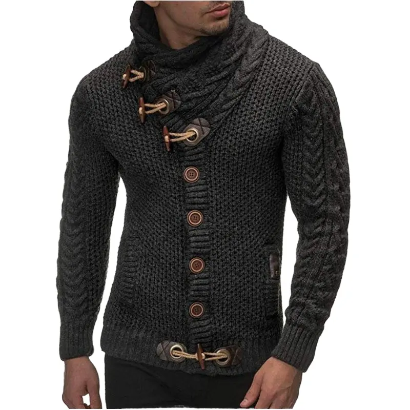 European and American New Fashion Winter Clothing High Collar Men's Elastic Long Sleeve Cardigan Sweater