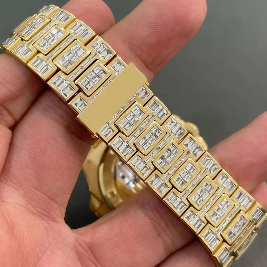 Fully Iced Out With Baguette Cut Vvs Clarity Diamonds Hip Hop Moissanite Watch for Men in Custom Dial Design