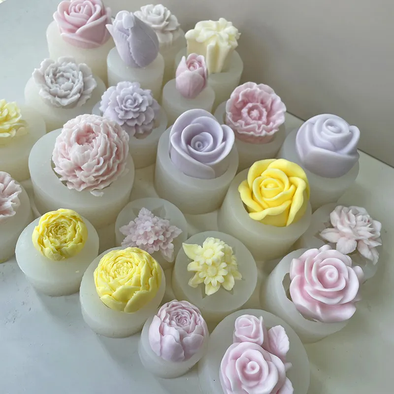 ขาย 3D ดอกไม้แม่พิมพ์ซิลิโคนสำหรับ Home Office ตารางเทียนหอมตกแต่งแม่พิมพ์เค้กเครื่องมือสำหรับเทียน