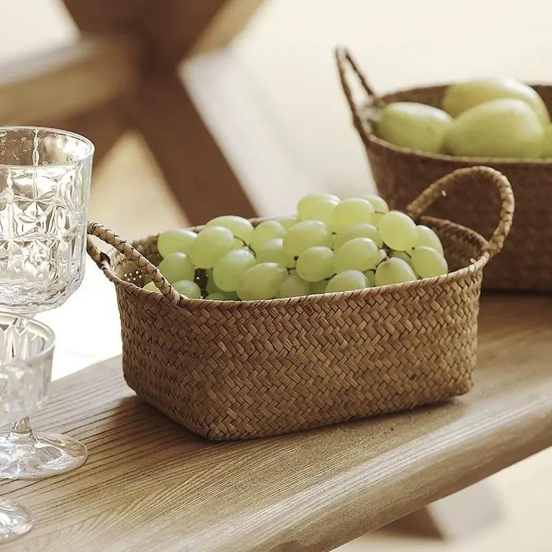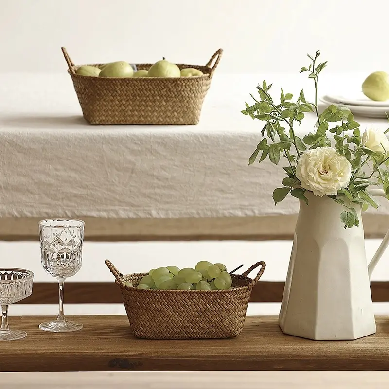 Handmade หวาย Seagrass ตะกร้า-ปรับแต่งขนาด Modern Living Room Home Decor การออกแบบที่ถอดออกได้สำหรับปิกนิกใช้