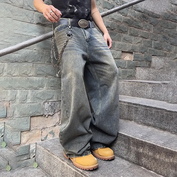 คุณภาพสูงอเมริกัน Homme สีดำหลวม Fit Denim Pantalon Man Buggy Denim กางเกงขาย Homme Baggy กางเกงยีนส์ Plus ขนาดกางเกงยีนส์ผู้ชาย
