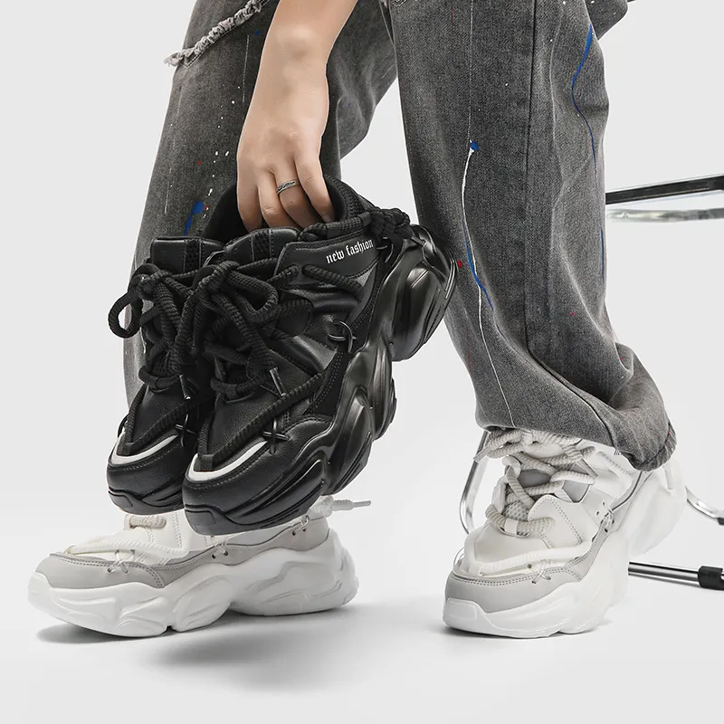 คุณภาพสูงคลาสสิก Chunky ตาข่ายวิ่งโลโก้ที่กำหนดเองรองเท้าผ้าใบ Unisex เทนนิสสีขาวเดินสไตล์รองเท้าสำหรับชายสบายๆ