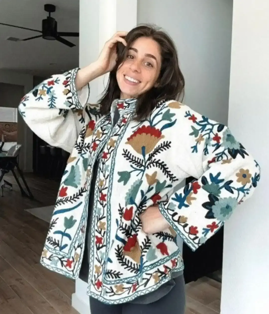 High Quality Designer Women's Clothing With Full Sleeves and Beautiful Colors Patterned Coat Artisanal Embroidery Jacket