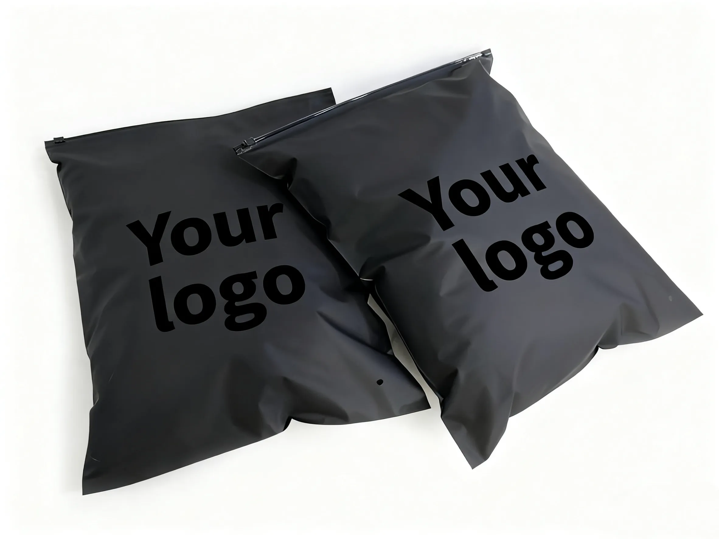 ที่มีคุณภาพสูงเคลือบสีดำที่กำหนดเองพิมพ์โลโก้เสื้อผ้าถุงซิปล็อคฝ้าสำหรับบรรจุภัณฑ์เสื้อผ้ารองเท้า