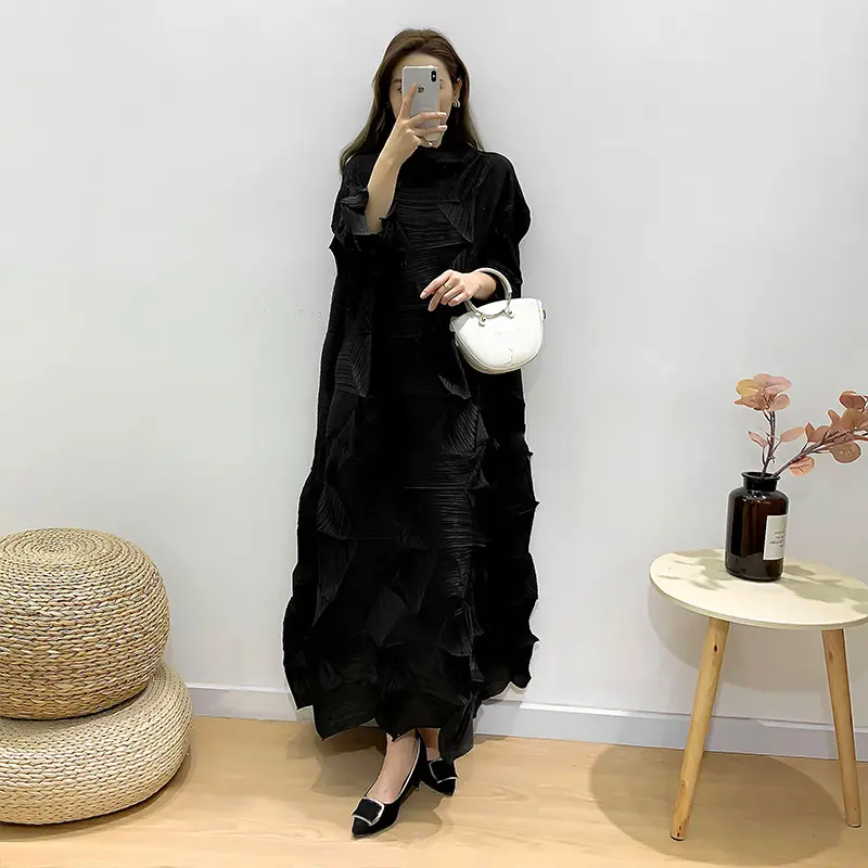 High Quality Plus Size Casual Dress Irregular Diamond Pleats Natural ODM Elegant Women's Clothing Large Stock Fast Shipping