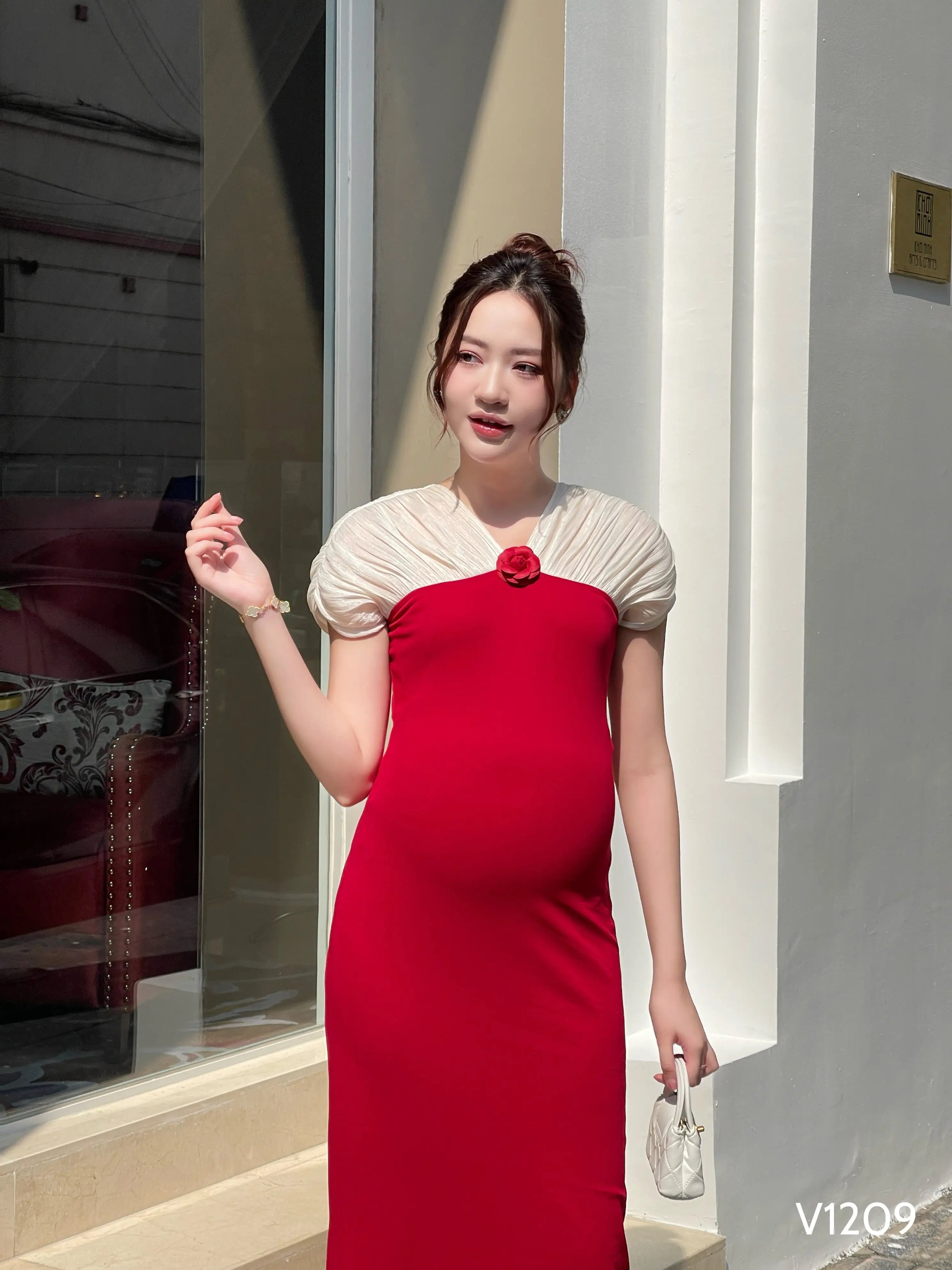 ชุดเดรสคลุมท้องฤดูร้อนคุณภาพสูงแขนสั้นผ้าดูดซับเหงื่อหดตัวนุ่มสบาย ODM V1209 เวียดนาม