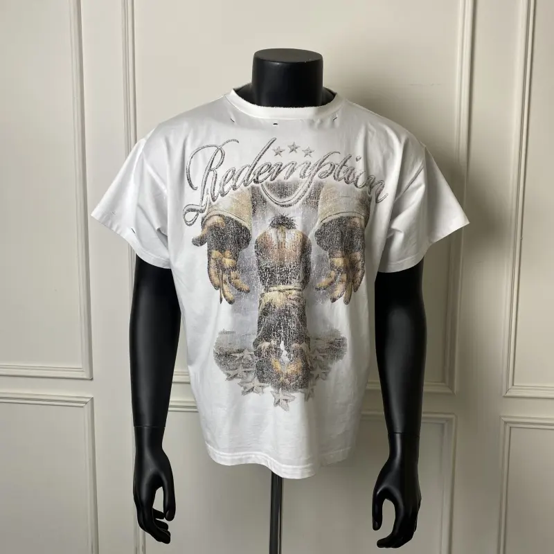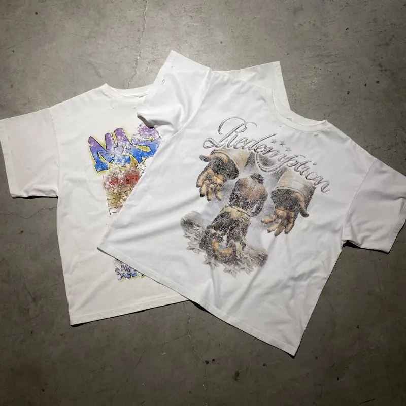 Hip Hop Pure Cotton Soft Distressed All Over Printing Wash Oversize Custom logo Street Wear Tshirts for Men Summer