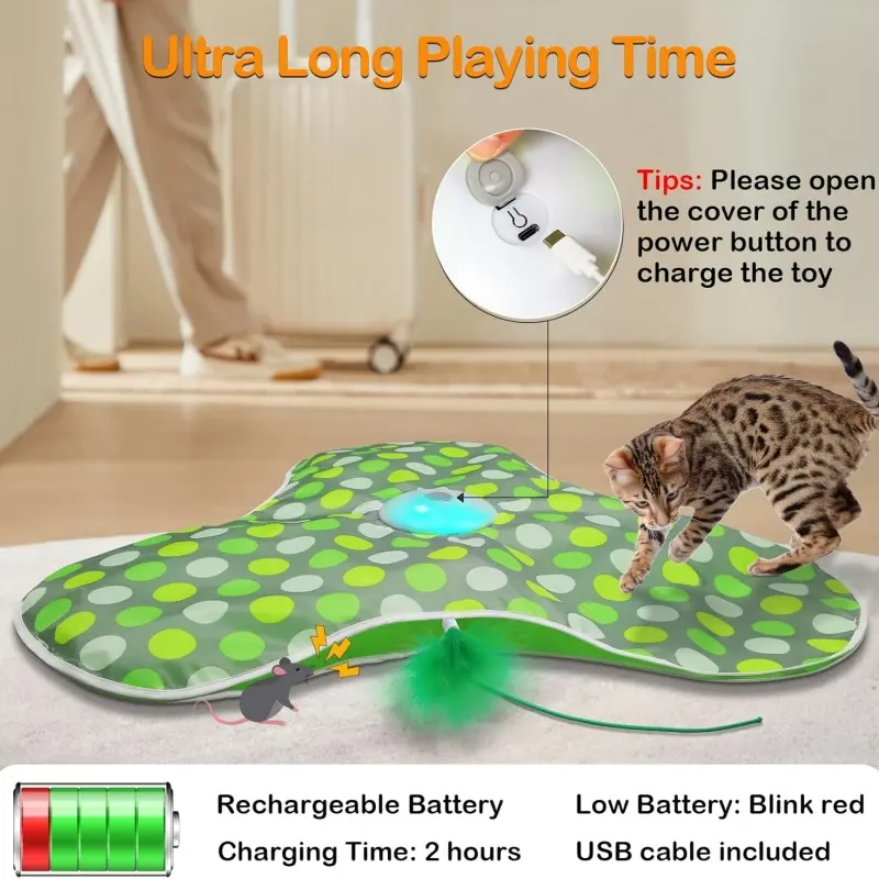 Interactive Moving Concealed Feathers Rechargeable Touch Activated Cat Kitten Indoor Toy