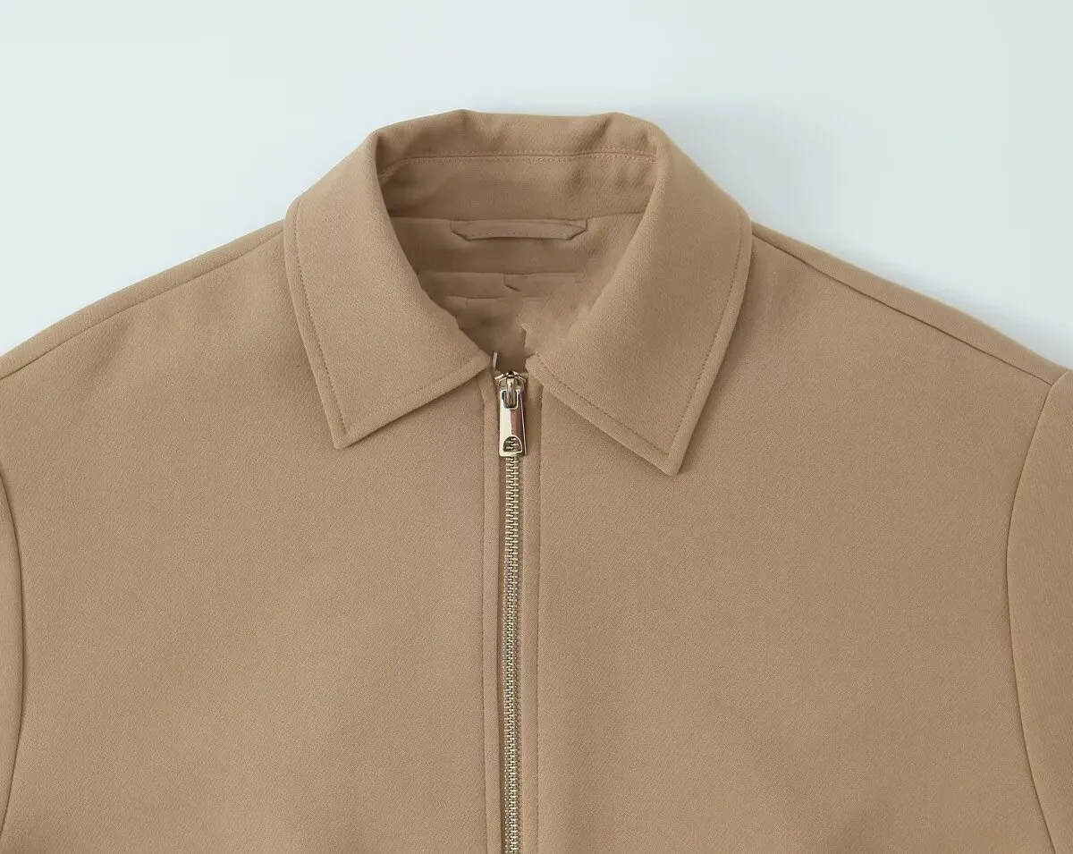 KAR&OT ZA 2025 Autumn New Women's Clothing Simple Casual Fashion Puff Elastic Decorative Layer Long Sleeve Lapel Jacket 8372246