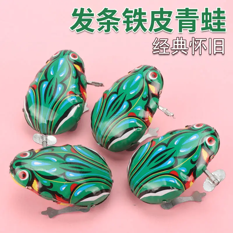 Kids Classic Tin Wind up Clockwork Jumping Iron Frog Toy Action Figures Toy for Children Kids Classic Toys for Boy Gift Baby
