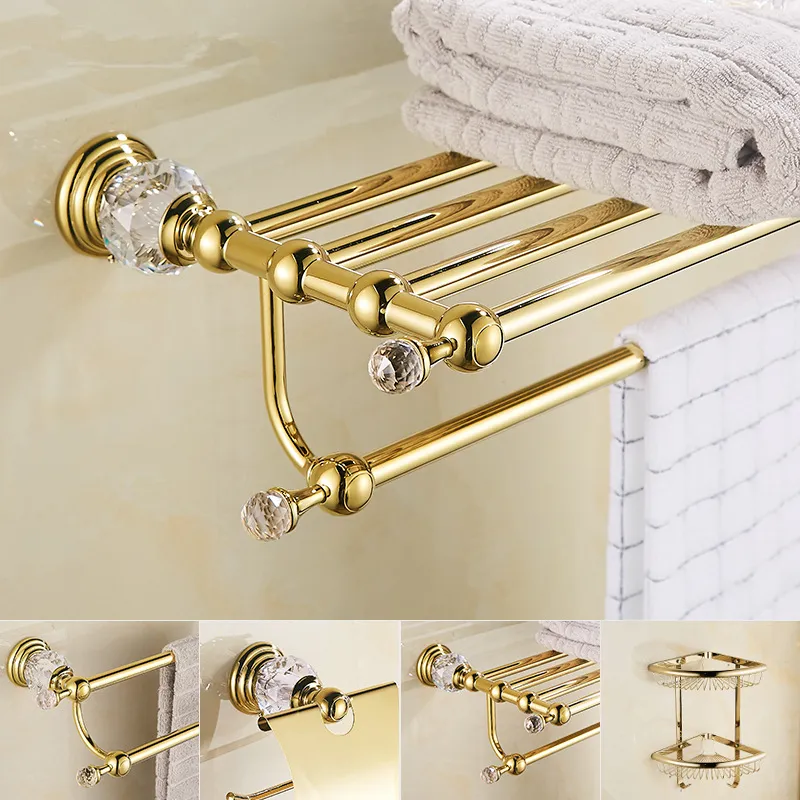 Kitchen Accessories Tool 7 Piece Hardware Gold Home Decor Bathroom Accessories Set with Crystal