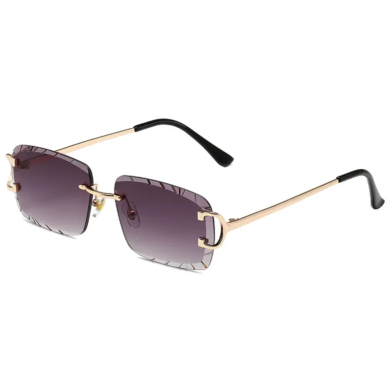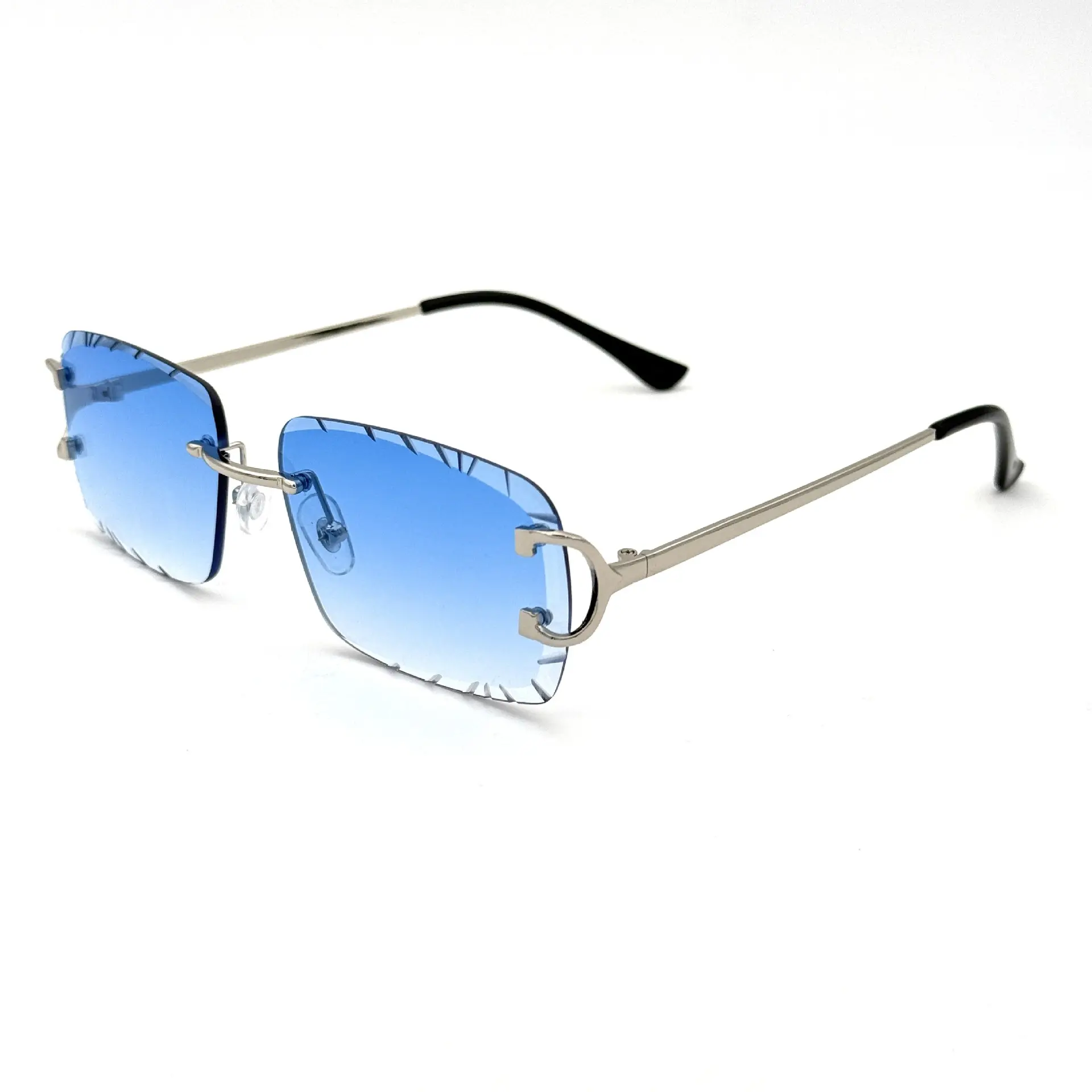 Lucky โลโก้ที่กำหนดเอง Designer โลหะ Rimless Square แว่นตากันแดดอินเทรนด์คลาสสิก Shades CUSTOM แว่นตากันแดดตัดเพชรผู้ชาย