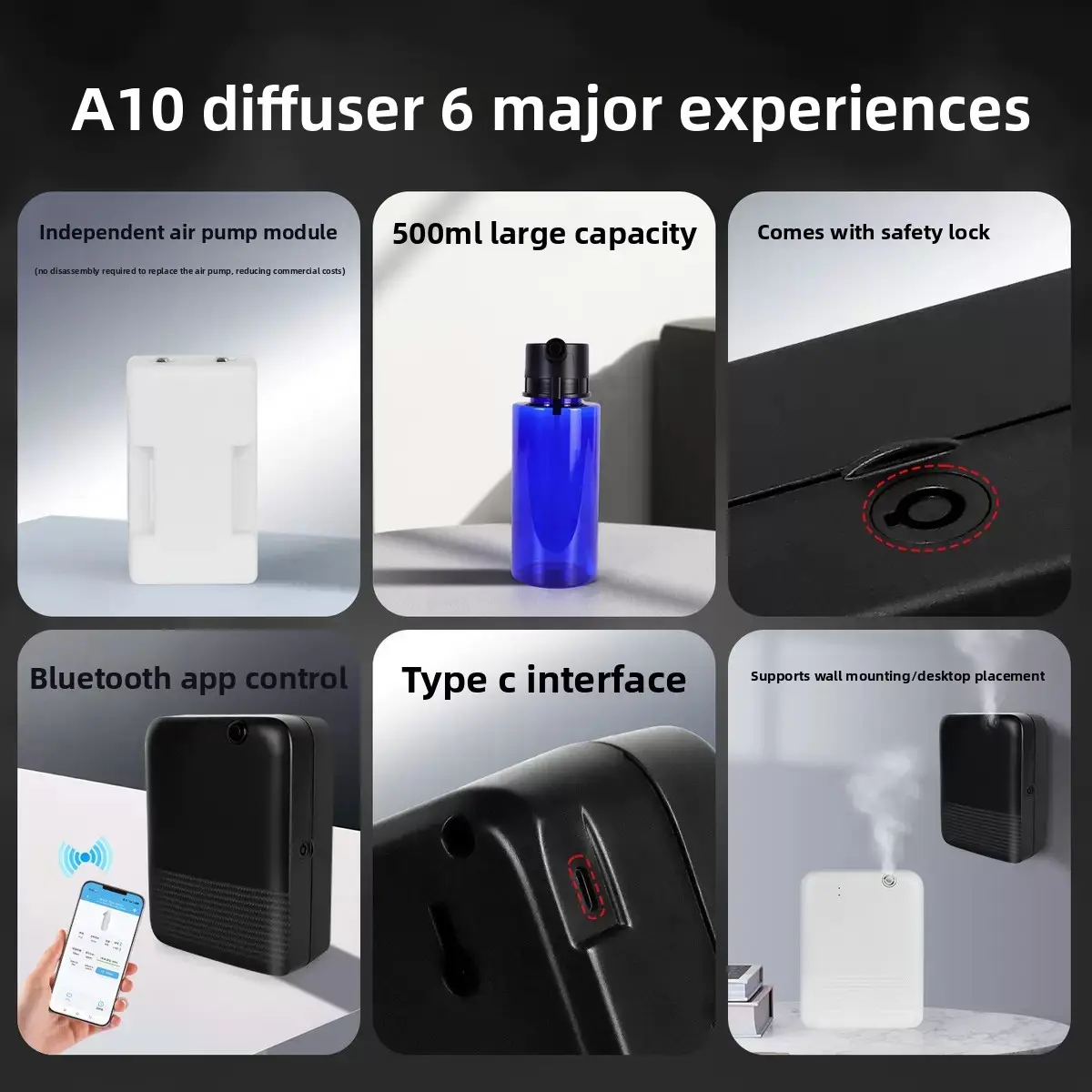 Luxury Home Decor 500ml Waterless ไฟฟ้า Cool Mist Essential Oil Diffuser พลาสติกโต๊ะน้ำมันเครื่องหอม