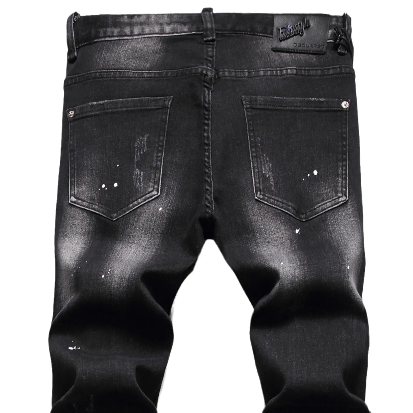โรงงานสไตล์ที่กำหนดเองหรือโลโก้ODMผู้ชายลำลองสีดำRippedตรงกางเกงยีนส์SkinnyกางเกงStreetwearฤดูร้อนHip-Hopสไตล์