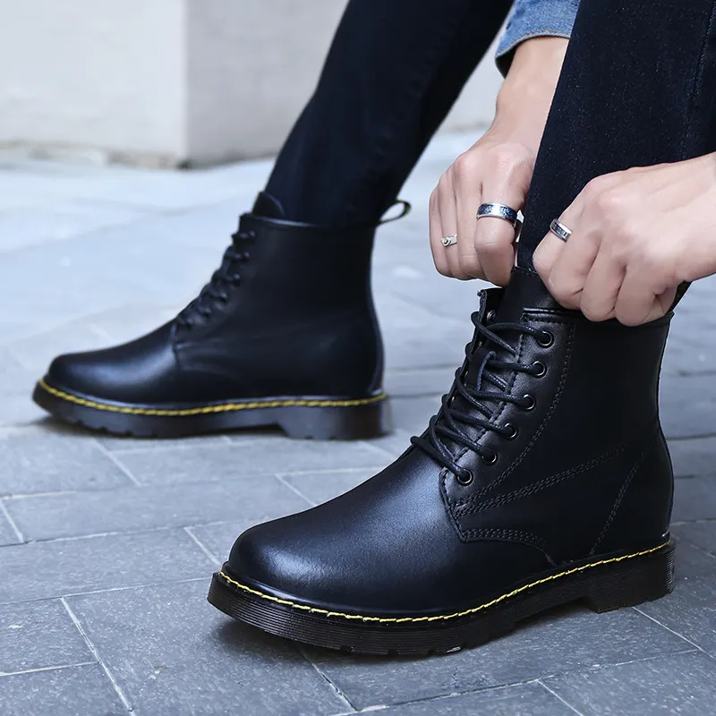 Martin Boots Men's Invisible Height Increasing 8cm Snow Boots High-top Leather Invisible Height Increasing Warm Boots