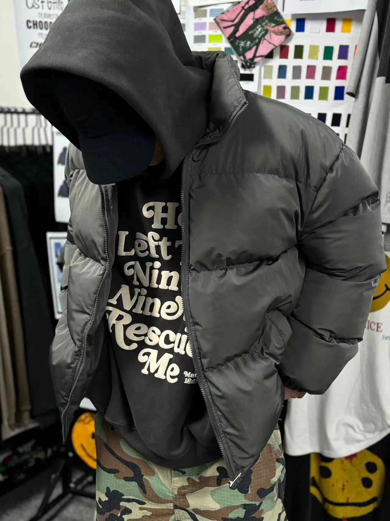 Men's Boxy Cropped Puffer Jacket Full-Zip Boxy Fit Collar Winter Outerwear Streetwear Private Label OEM/ODM Manufacturer