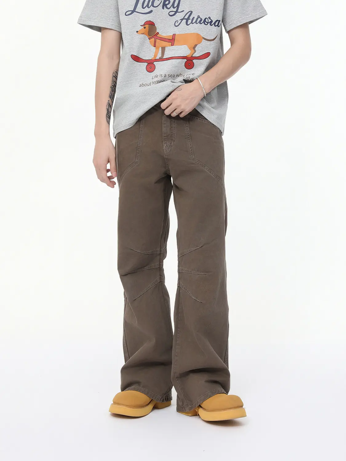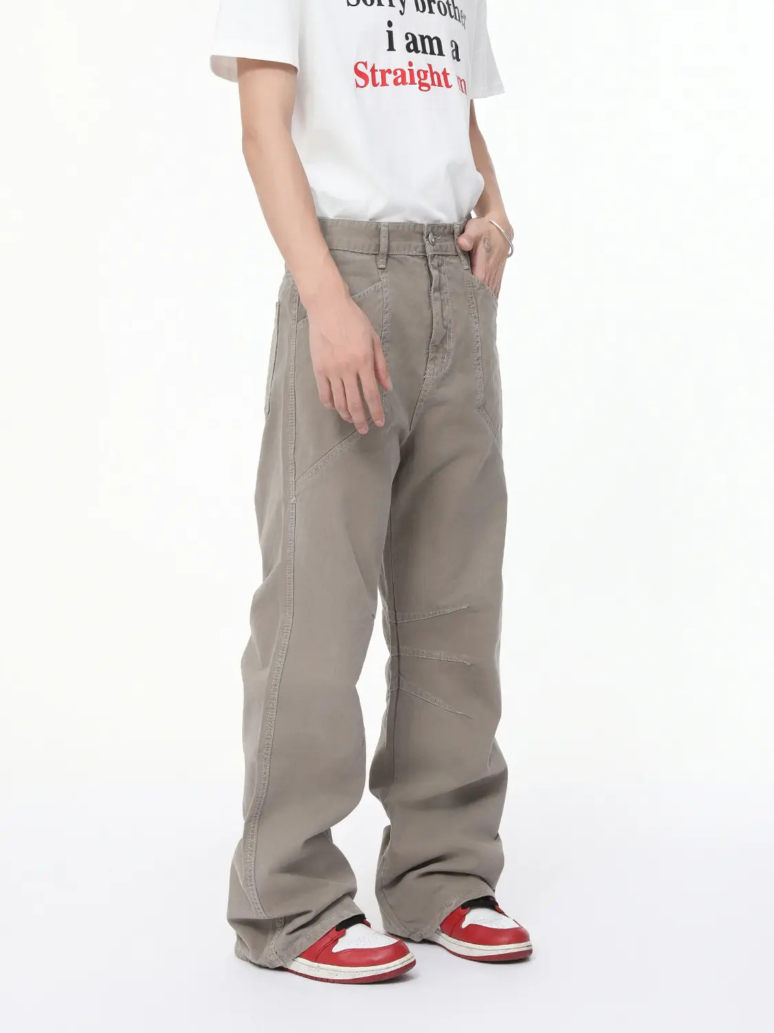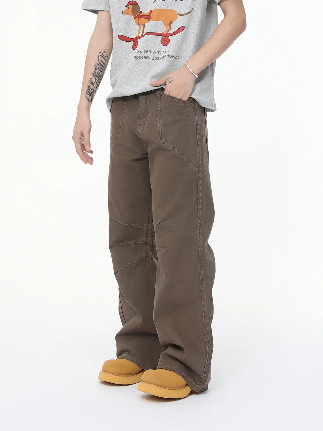 Men's Clothing | American Vibe Pleated Patchwork Trendy Straight-Leg Floor-Length Jeans with a Stylish Drape