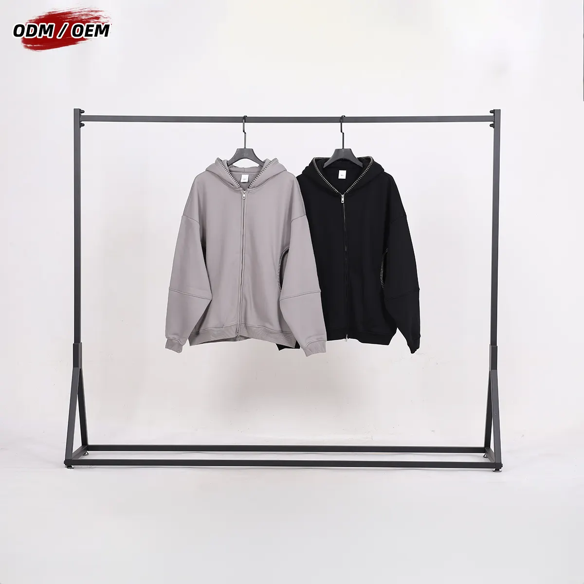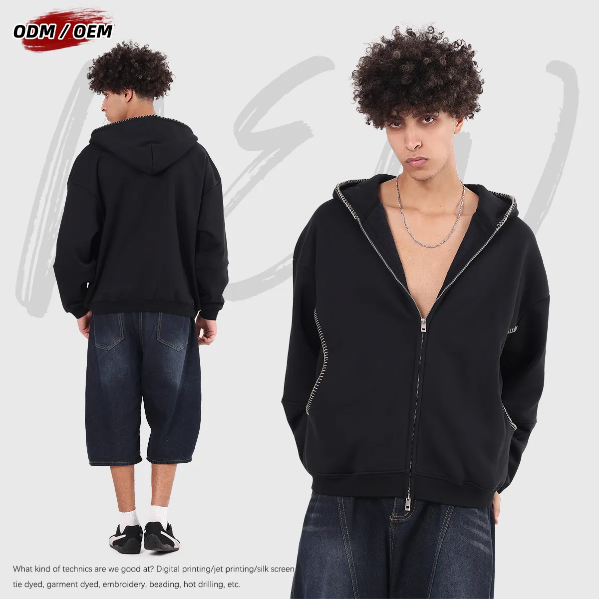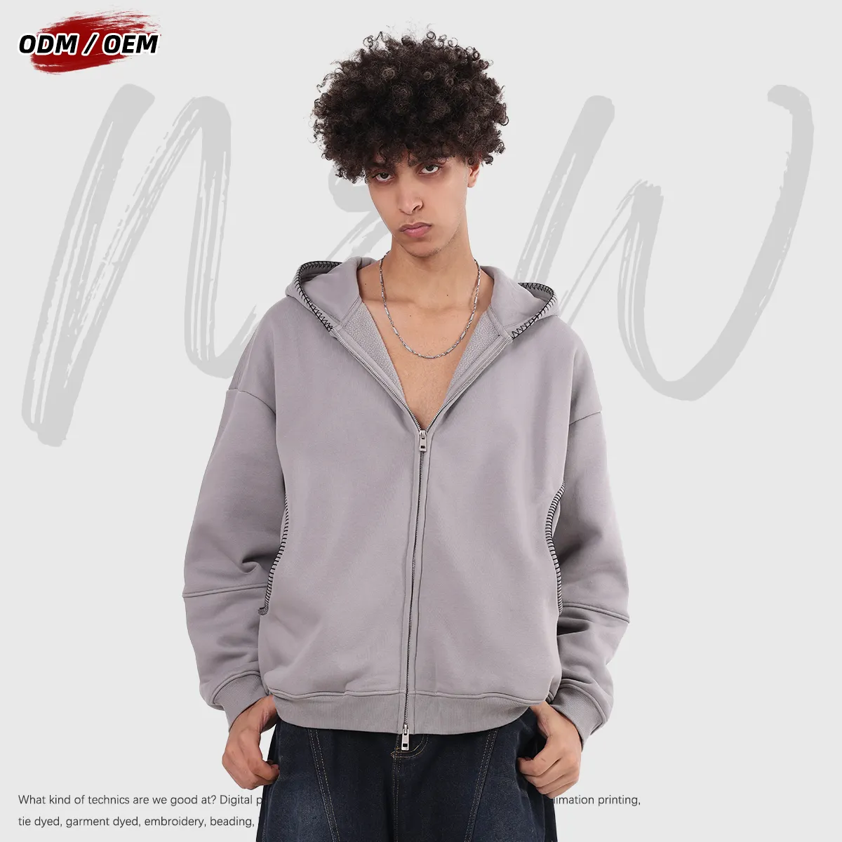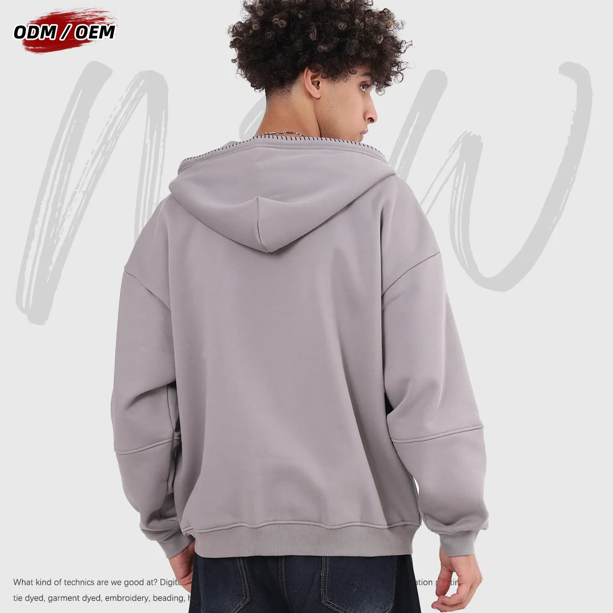 Men's Vintage Winter 385Gsm Fleece Zipper-up Hooded Jacket Lock-stitch Embroidery Front-opening Zipper Hoodie