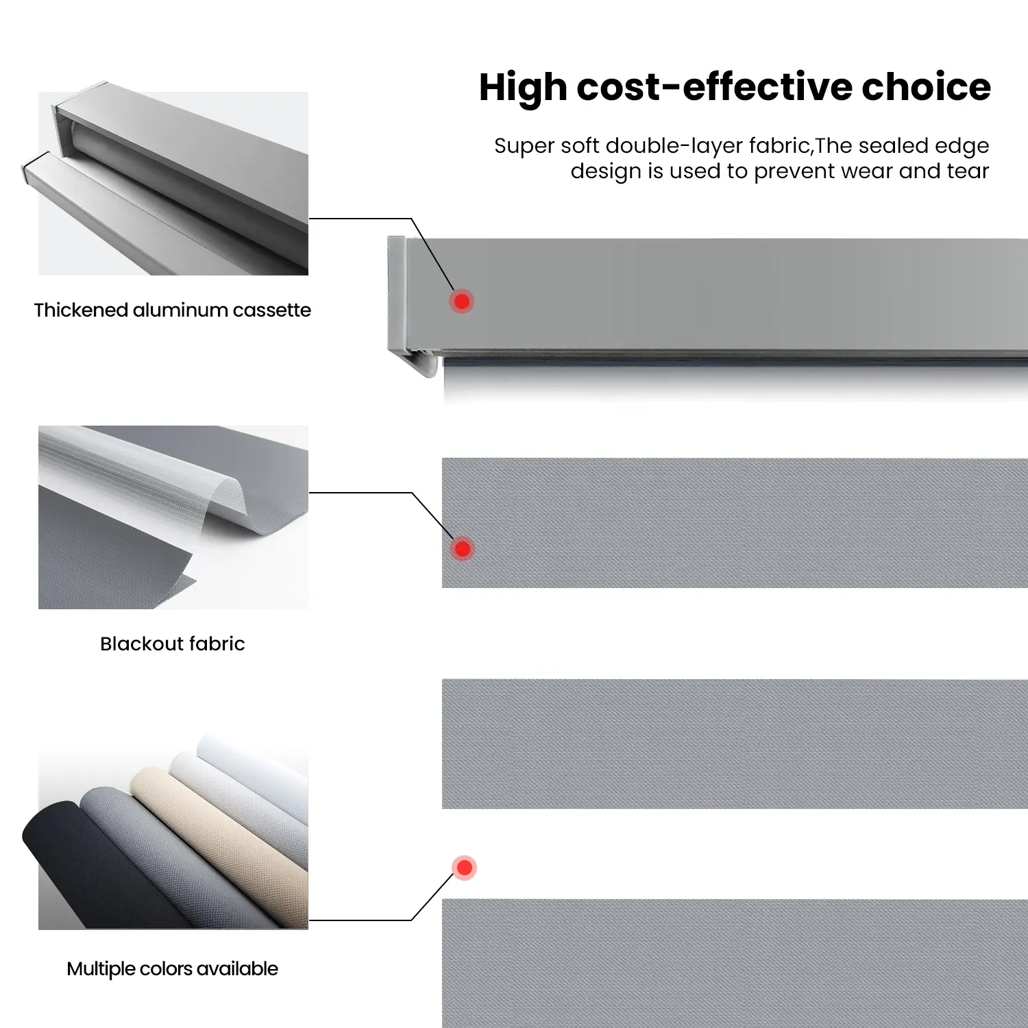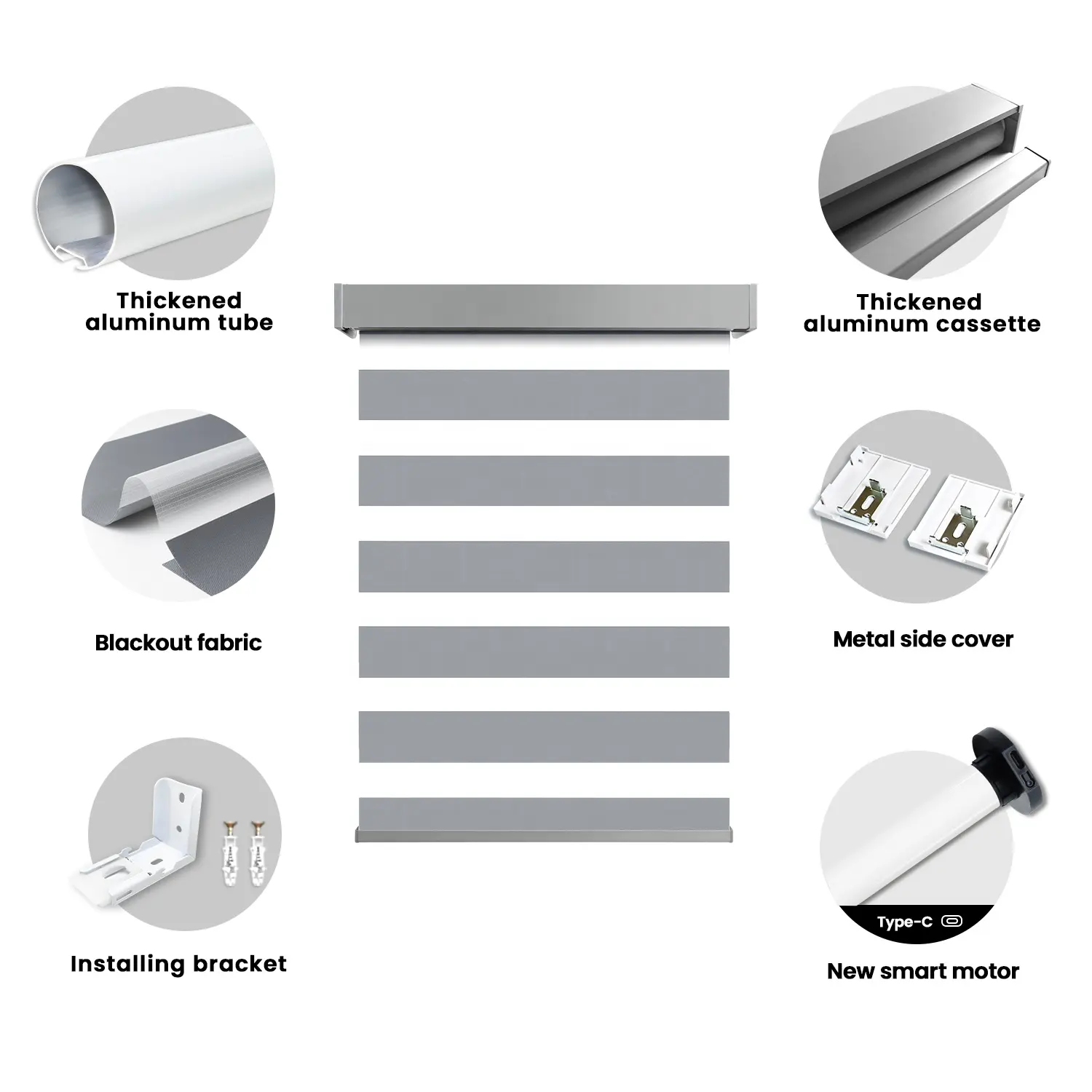 โมเดิร์นสมาร์ท WiFi Google Alexa รีโมทคอนโทรลไฟฟ้าอัตโนมัติ Day Night Blackout มอเตอร์ Zebra Roller Blinds สำหรับ Window