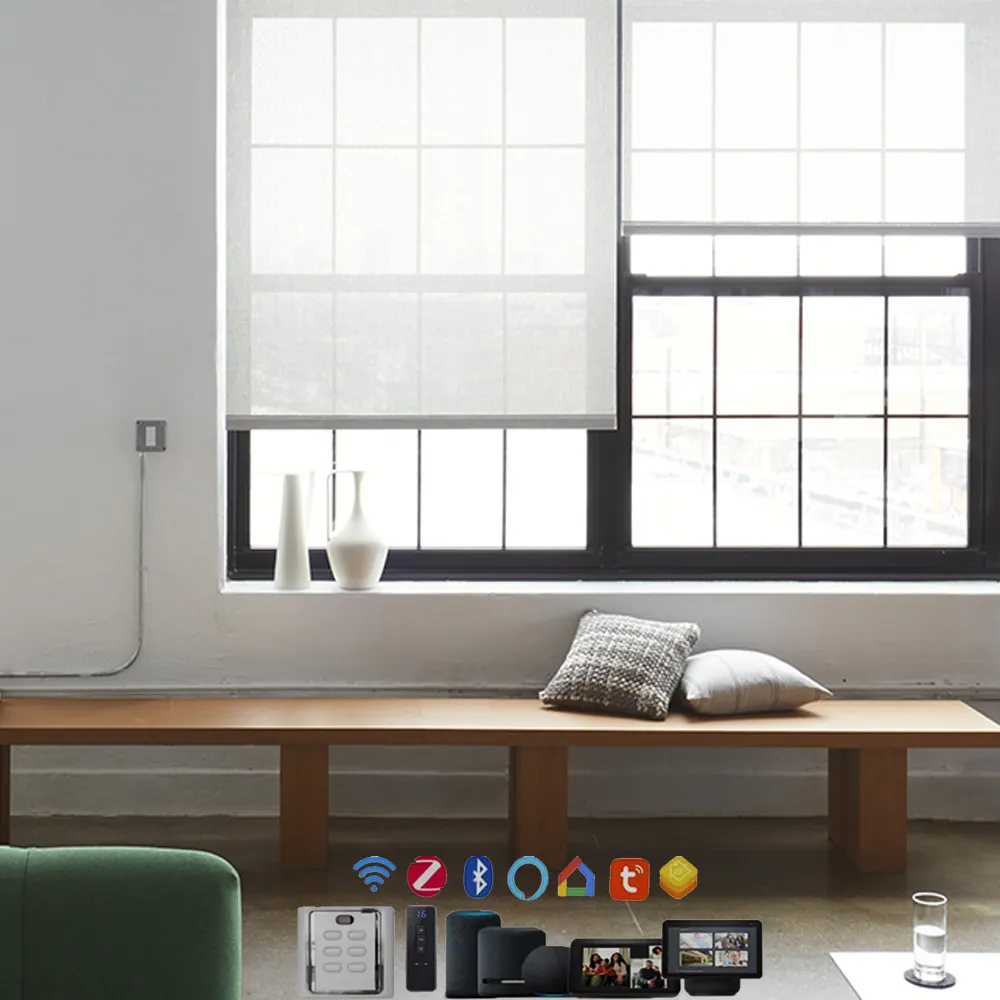 ม่านบังตาแบบใช้มอเตอร์พร้อมรีโมท ม่านบังตาอัจฉริยะ ม่านบังตาไฟฟ้าแบบชาร์จไฟได้