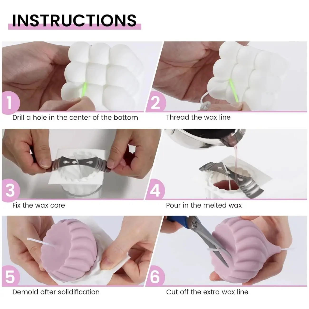 Multi-Specification 100 Wick ซิลิโคนเทียนแม่พิมพ์ชุด 2 วงเล็บบ้านตกแต่งเทียนหอมทำเครื่องมือหล่อเค้กเค...