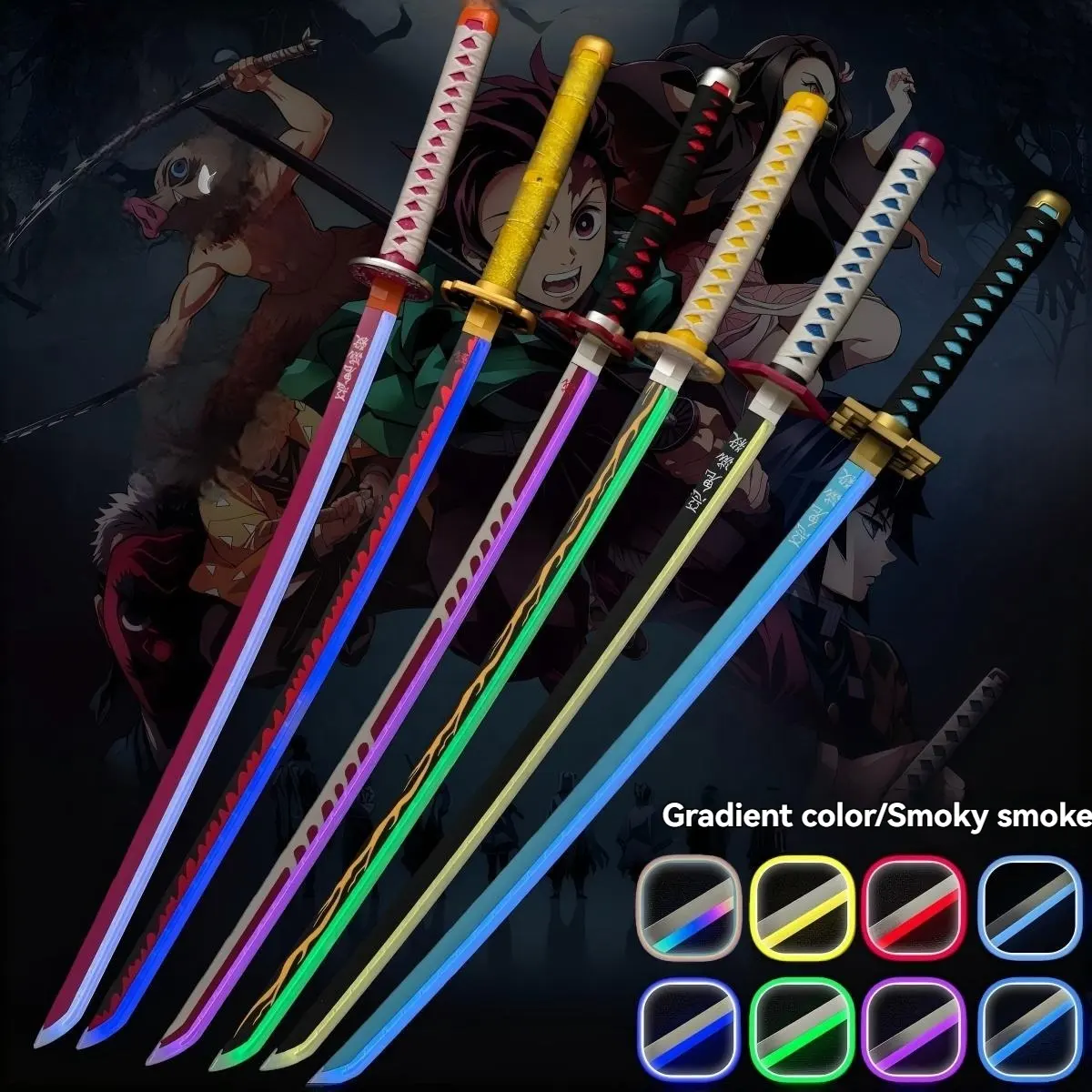 New Arrival Hot Sale 104CM Wooden Demon Slayer Spray LED Luminous Knife Multiple Colors Japanese Samurai Bamboo Toy Swords