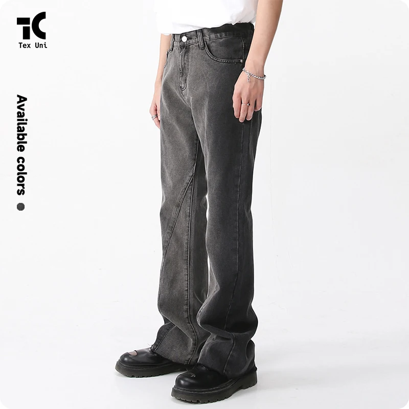 มาใหม่ล่าสุดผู้ชายสไตล์เกาหลีล้างวินเทจเอวยางยืดค่อยเป็นค่อยไปลุกเป็นไฟ Bootcut กางเกงยีนส์